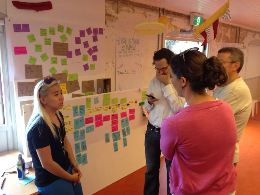 The third day focused on the actual ‘design’ process. For the first half of the day more divergent activities: rapid prototyping and real-world testing of ideas to see if they worked as intended and gather feedback. The latter part of the day then turned to final concept refinement and development of a summary presentation.